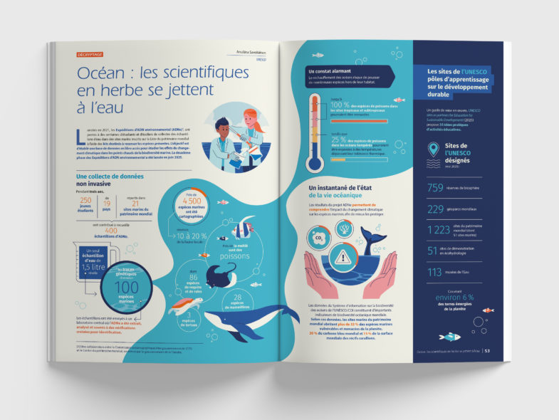 Réalisation du Courrier de l’UNESCO en 4 langues (Français, Anglais, Espagnol et Russe)