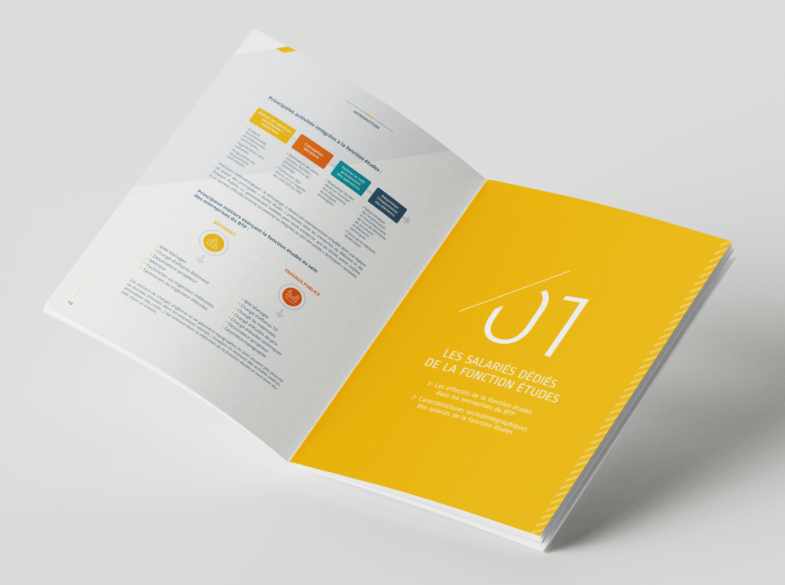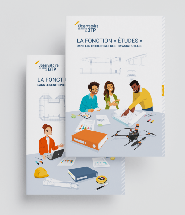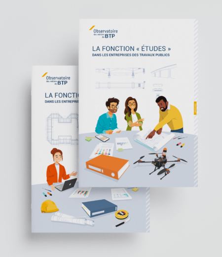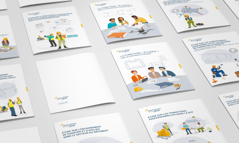 Création et réalisation de la ligne graphique et des illustrations des Études de l’Observatoire des métiers du BTP.