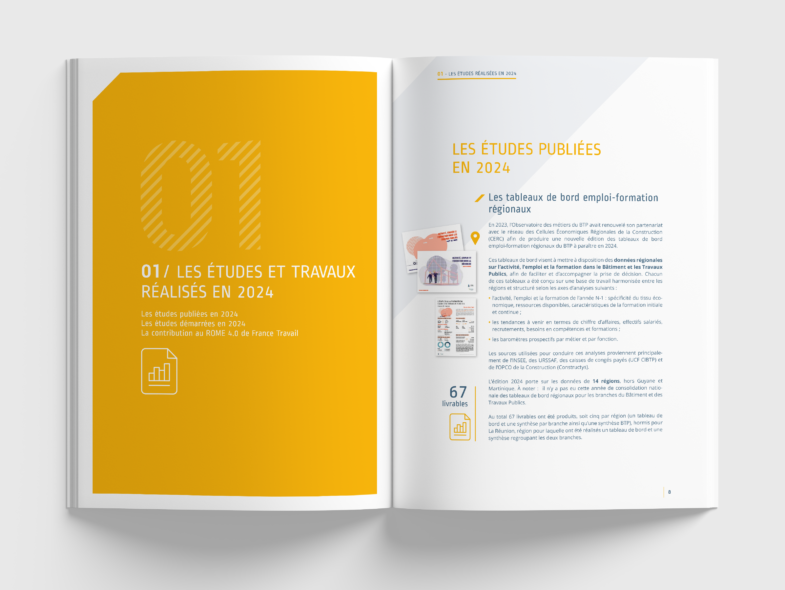 Création et réalisation du Bilan d’activité et des fiches thématiques de l’Observatoire des métiers du BTP.